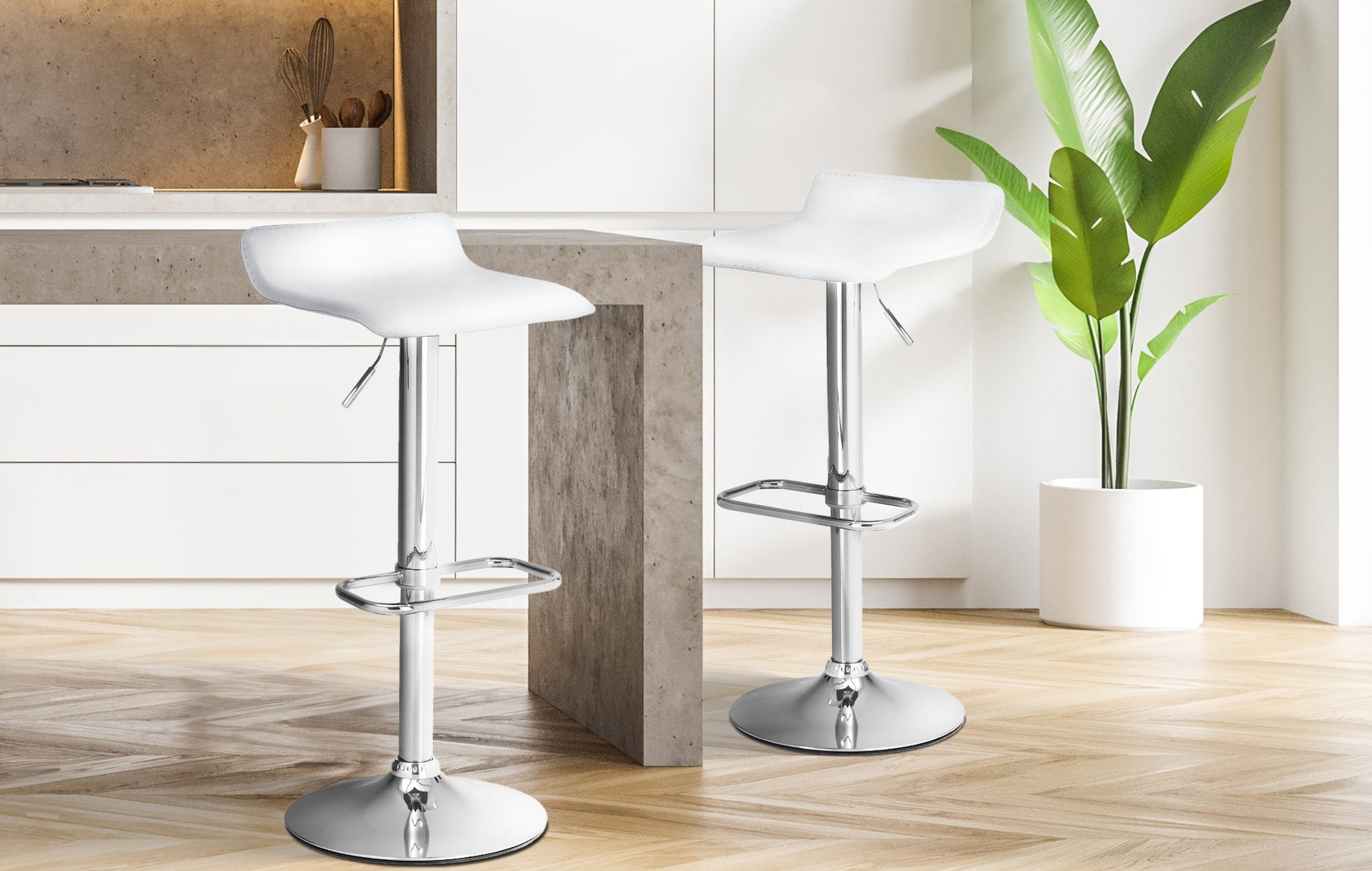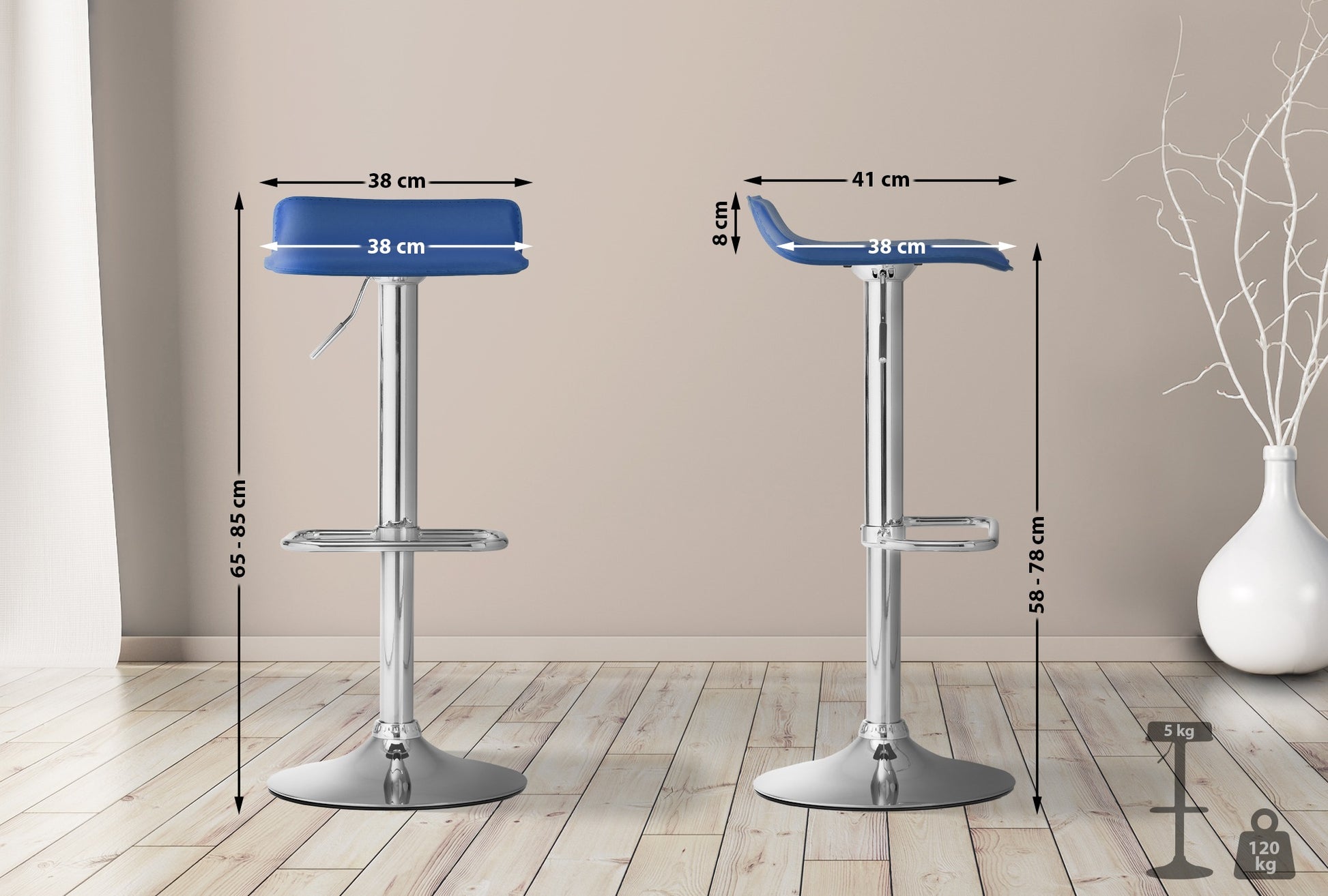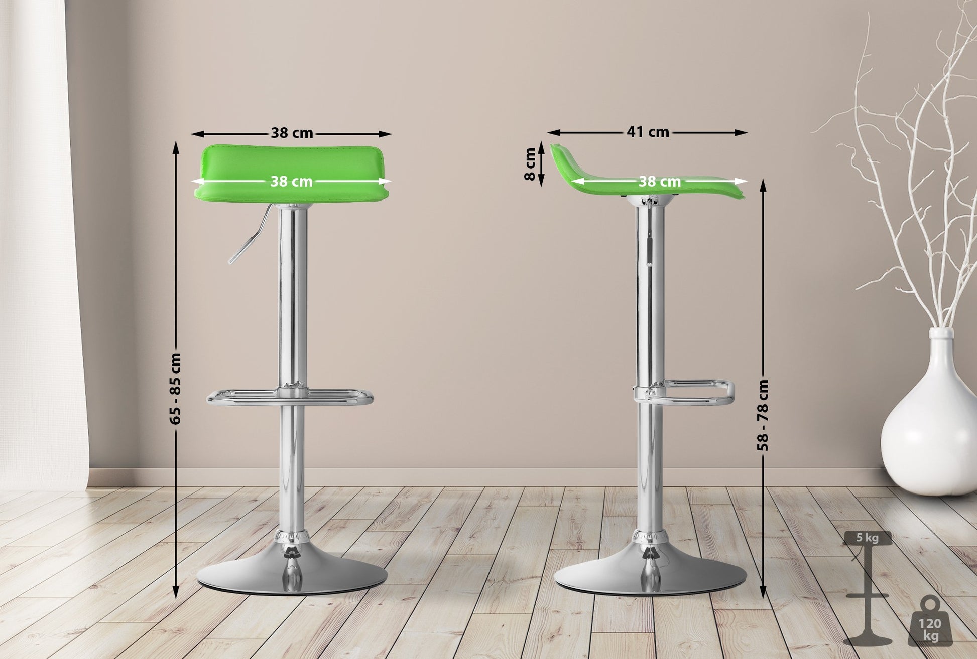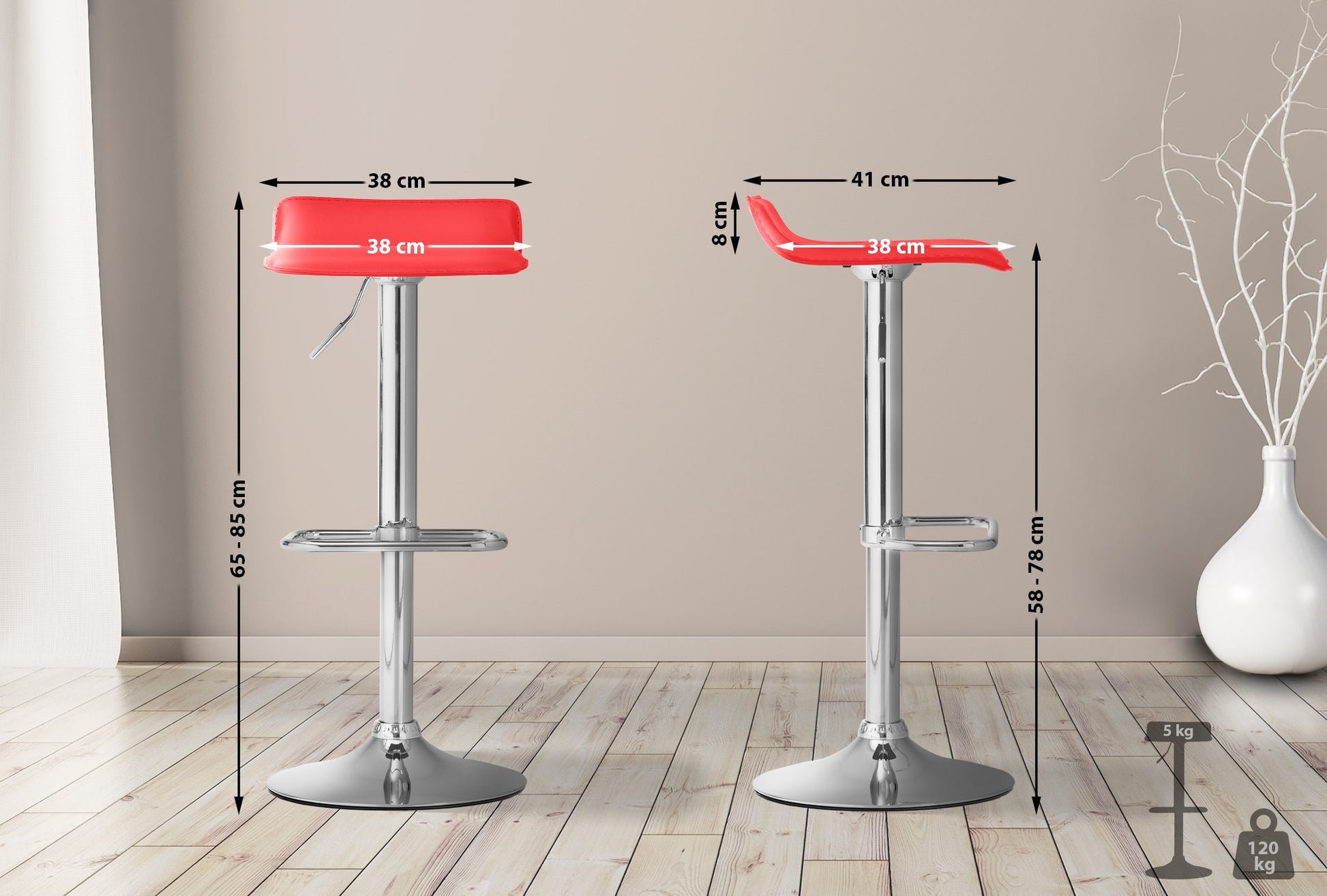 The bar stool features a height-adjustable seat that can be easily adjusted to your needs. The 360-degree rotation allows for unrestricted freedom of movement.