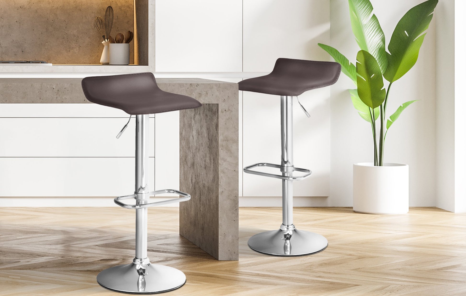 The Dyn Barstool in Synthetic Leather impresses with its modern, minimalist look. This makes it ideal for kitchens, bars, and living rooms.