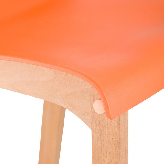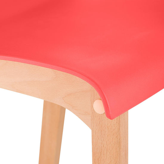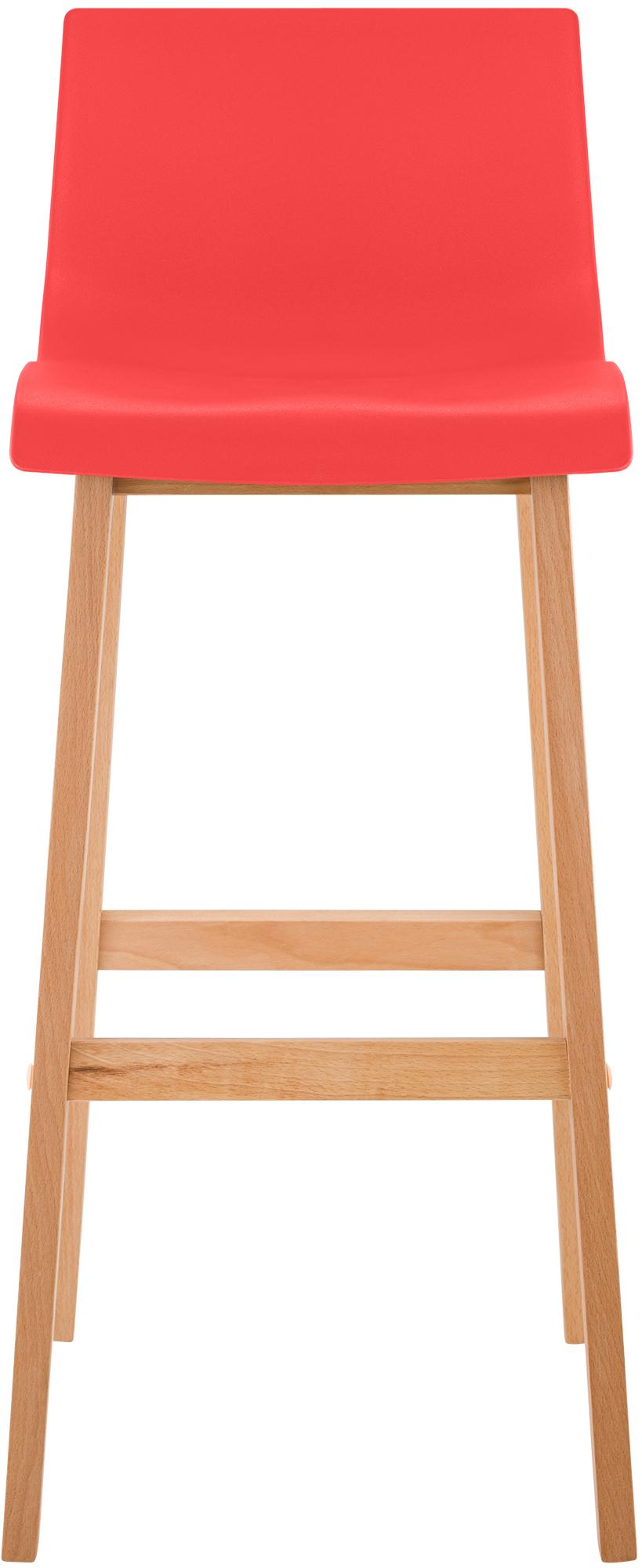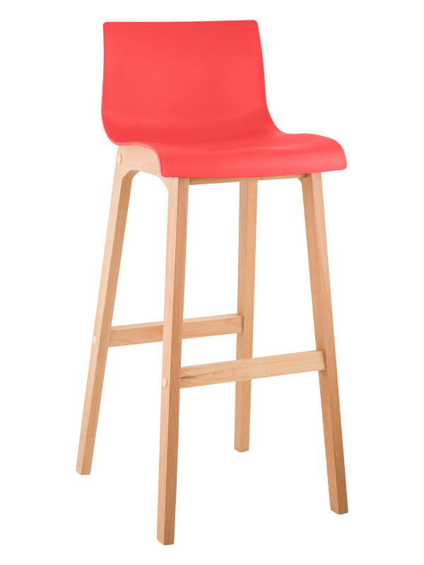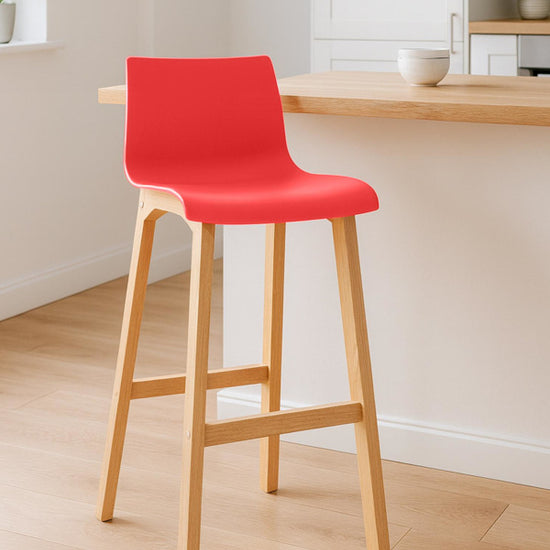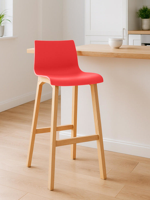 The bar stool features a harmonious combination of polypropylene and beech wood, and its vibrant colors add a touch of freshness to any bar counter.