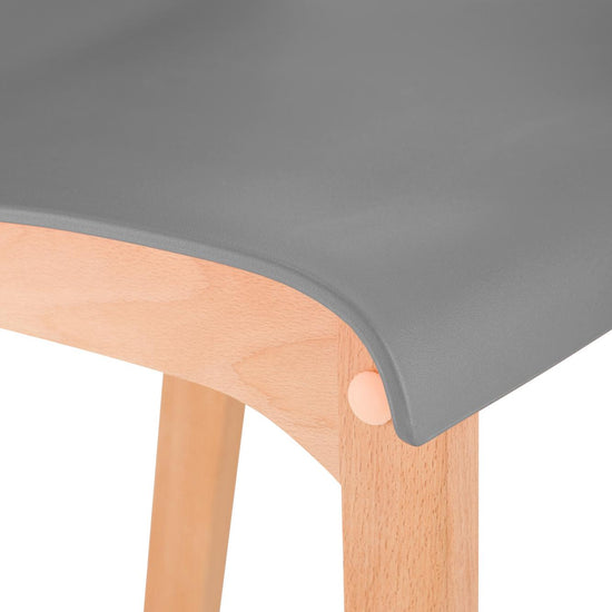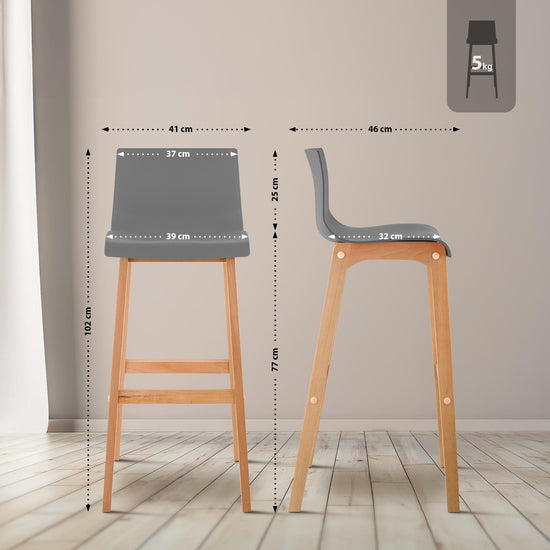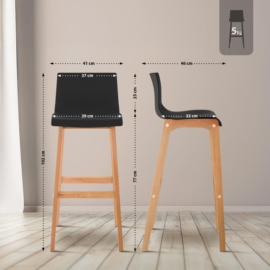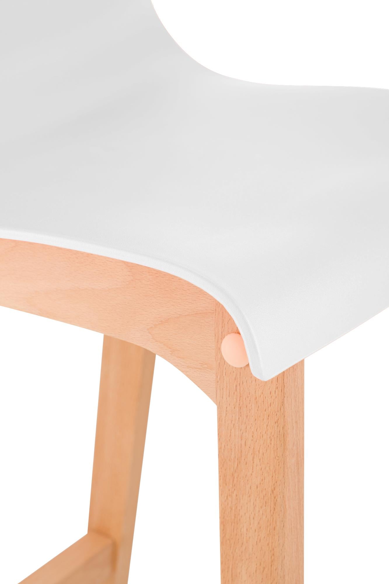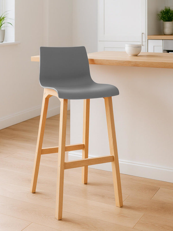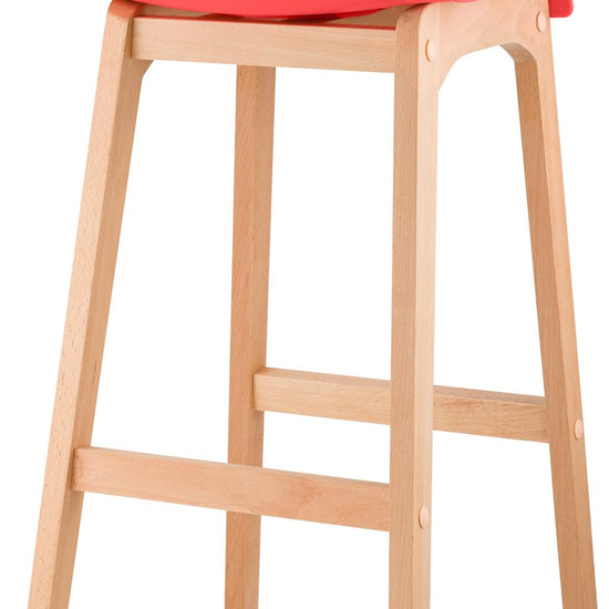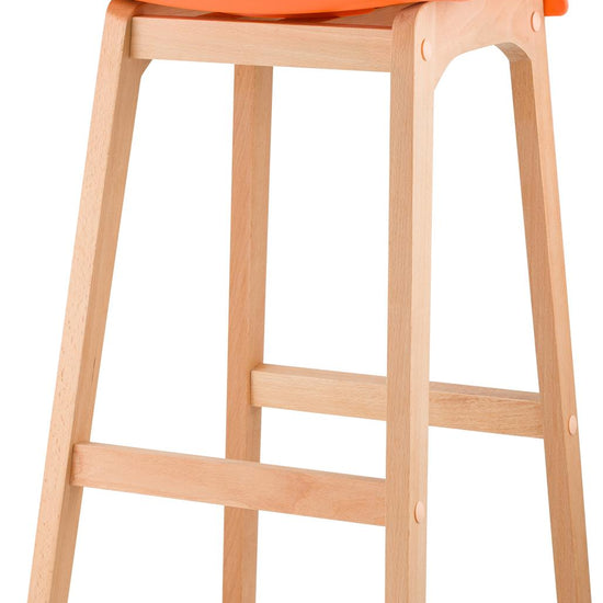 The bar stool features a harmonious combination of polypropylene and beech wood, and its vibrant colors add a touch of freshness to any bar counter.