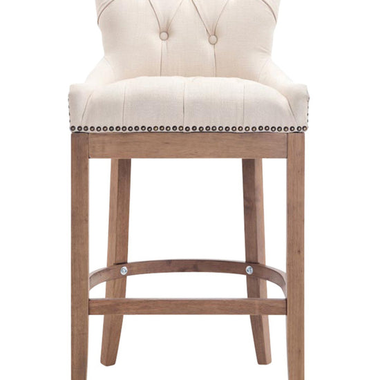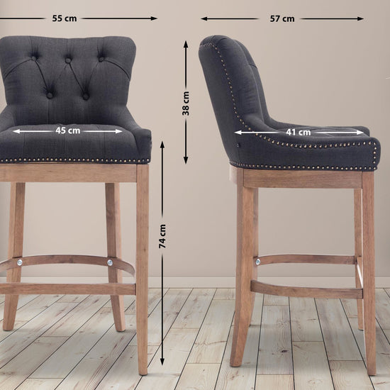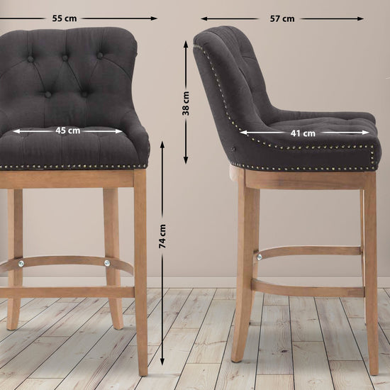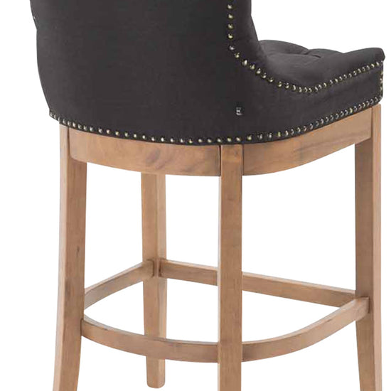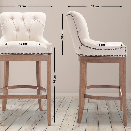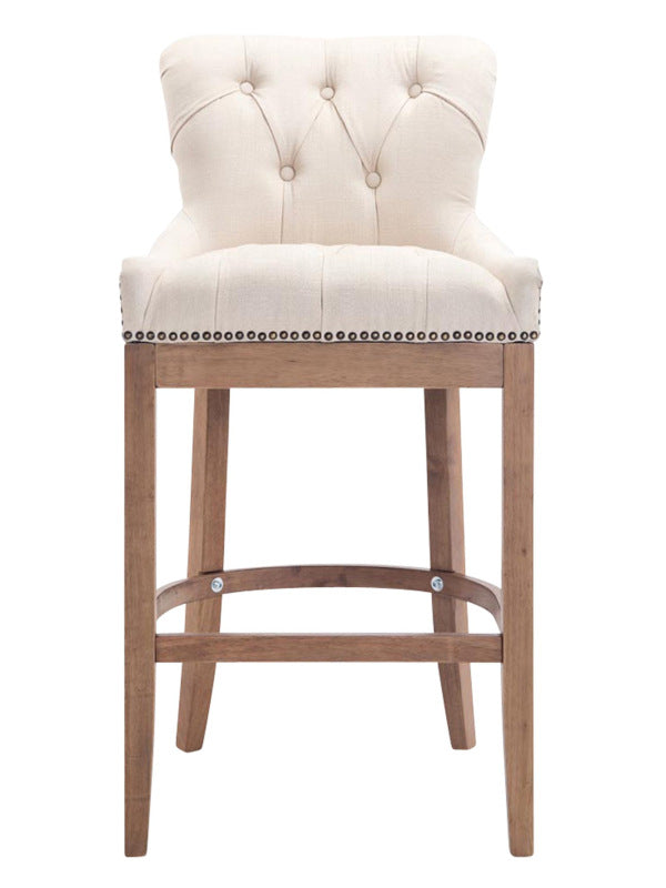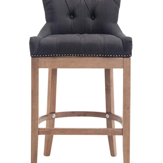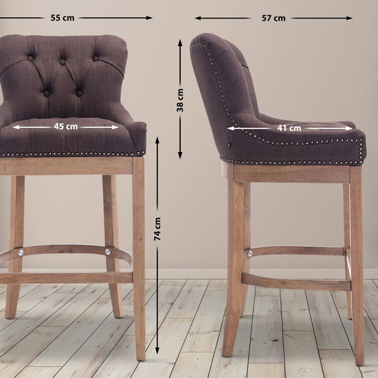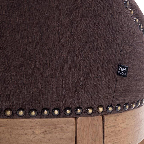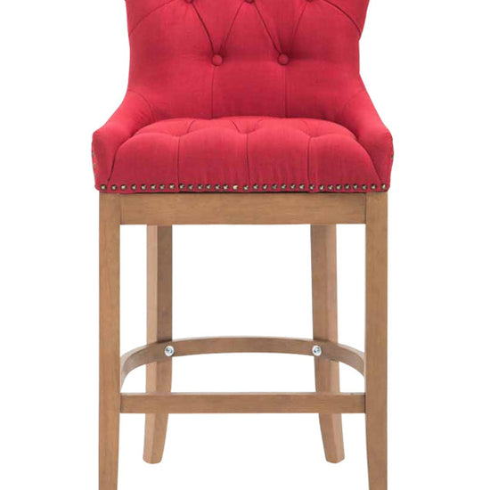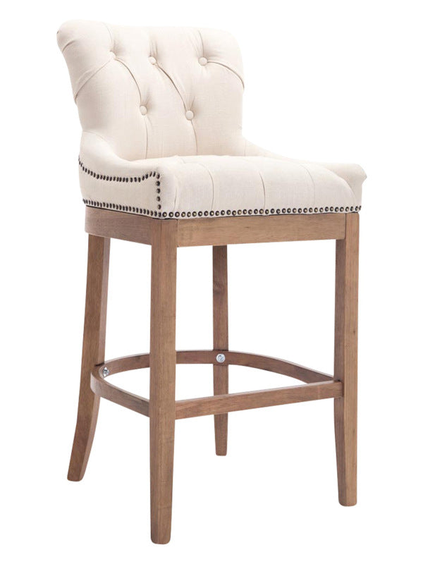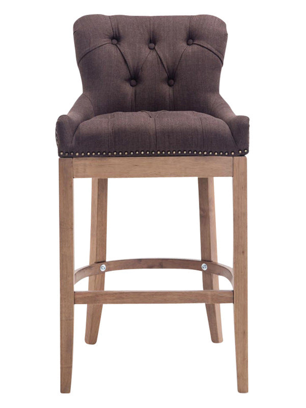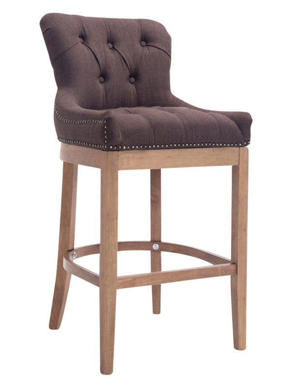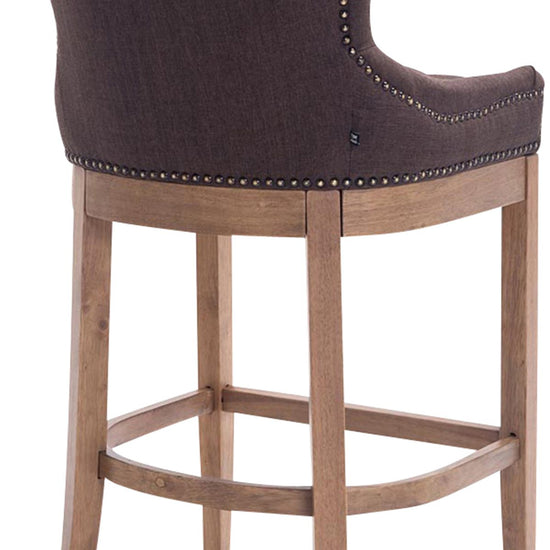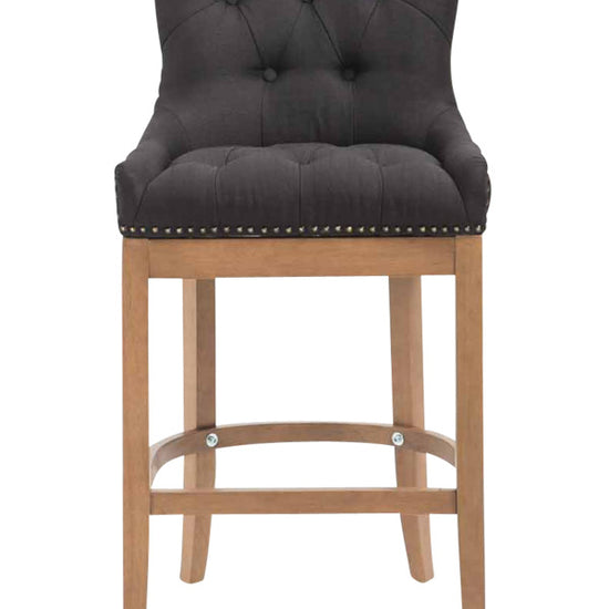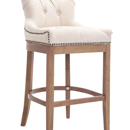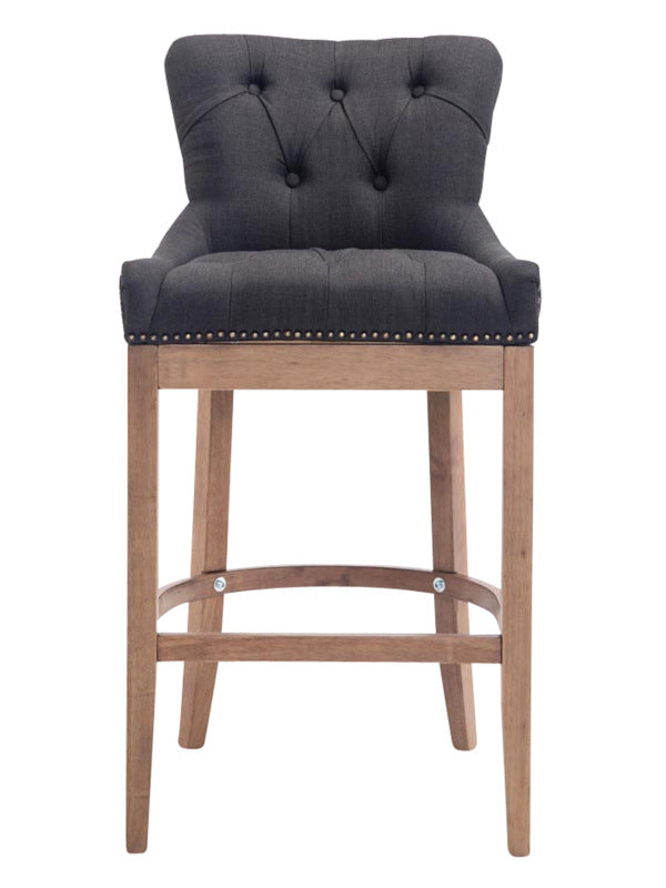 The high stool features extra-thick padding and a comfortable, durable upholstery. It also features decorative brass buttons with a bronze finish that run along the edges.