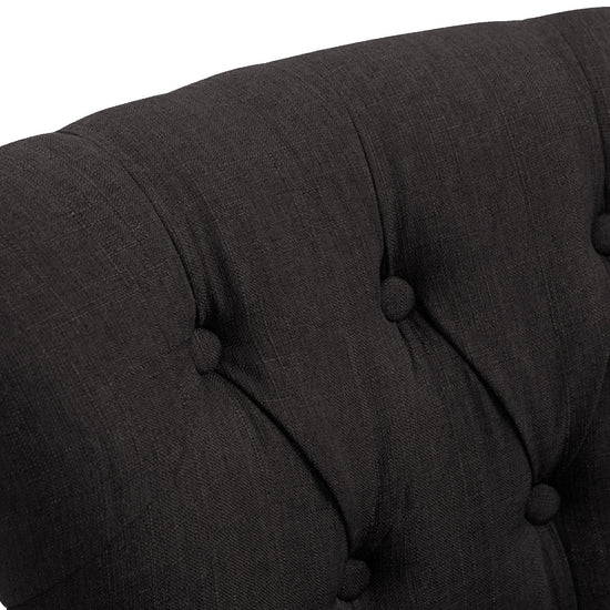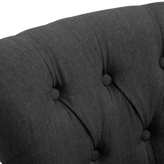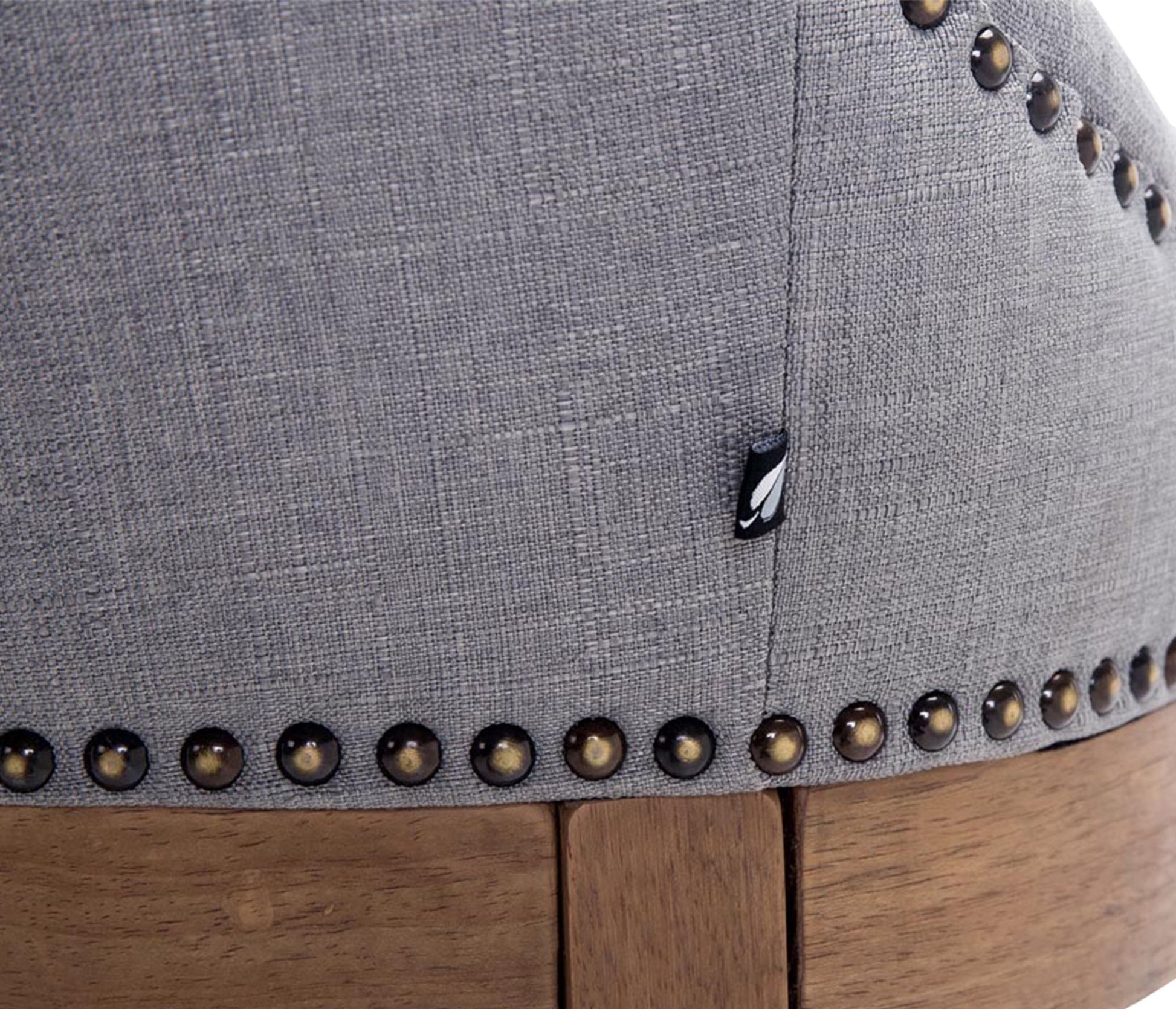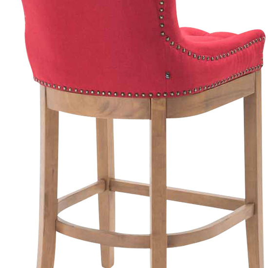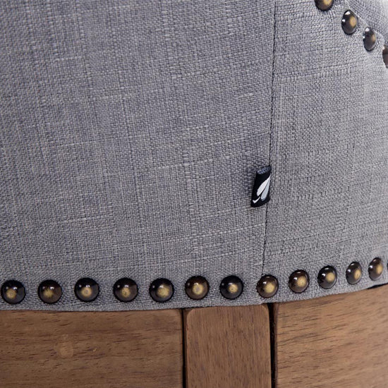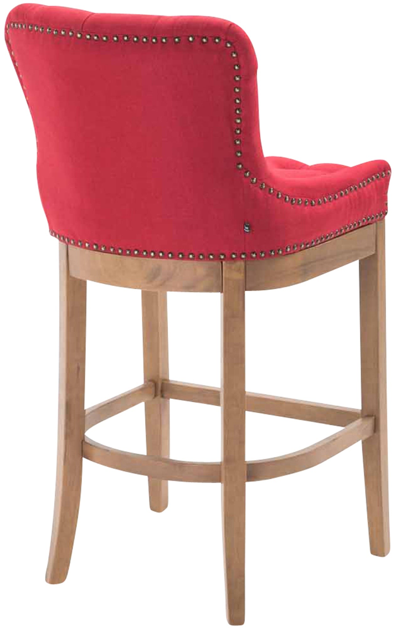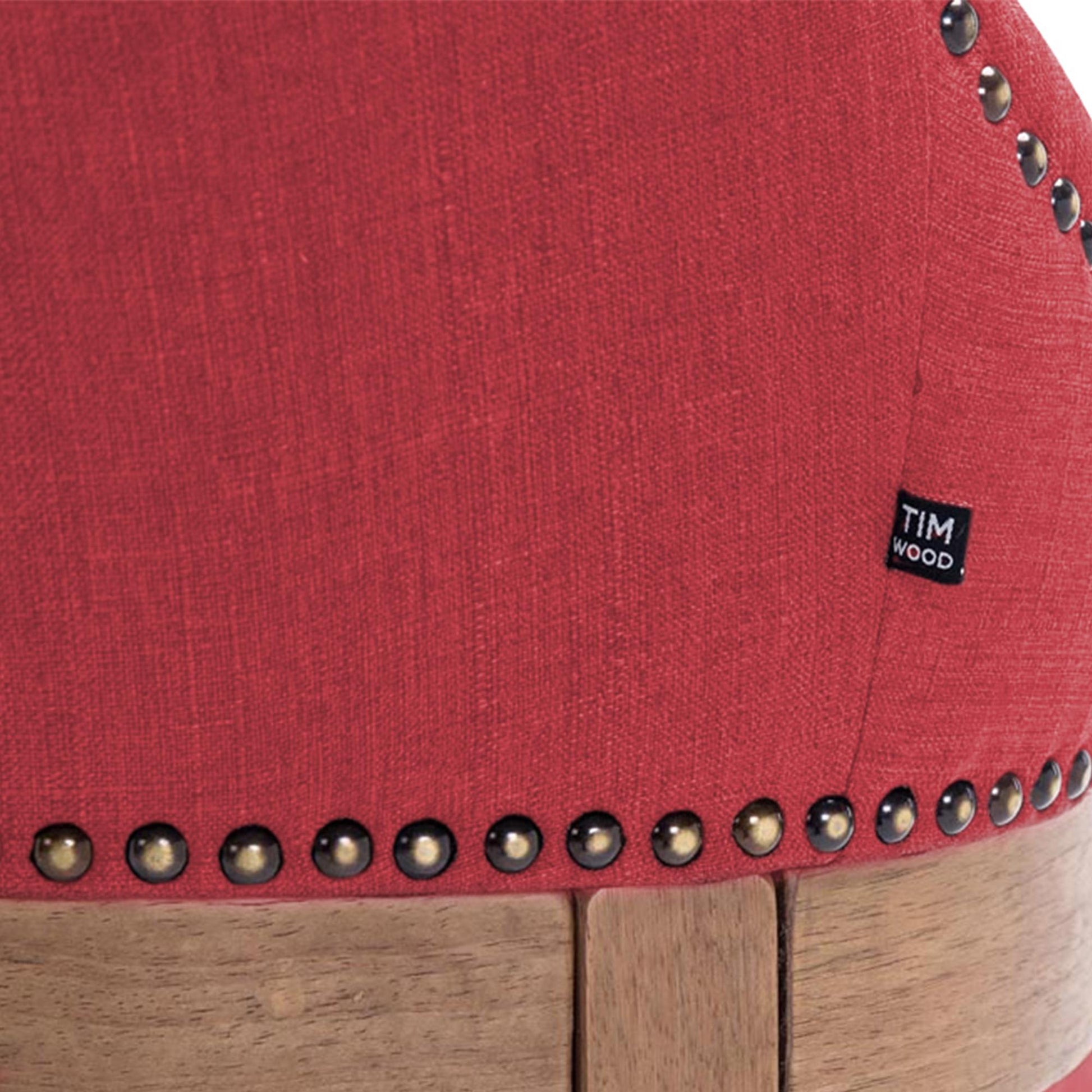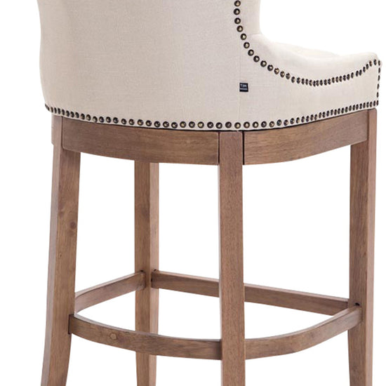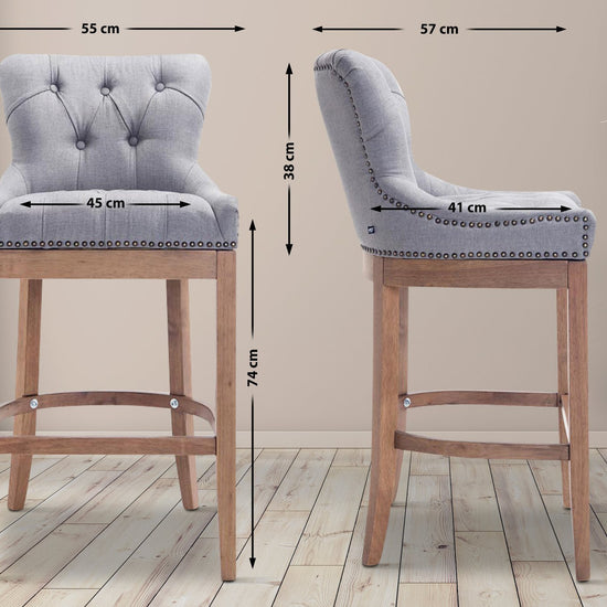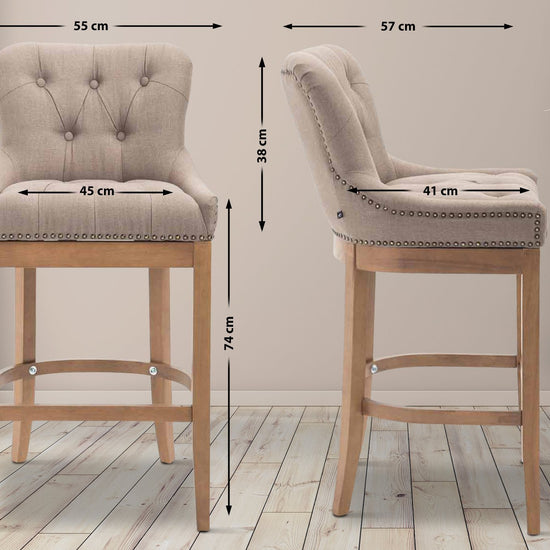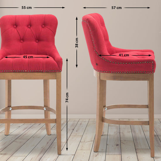 The high stool features extra-thick padding and a comfortable, durable upholstery. It also features decorative brass buttons with a bronze finish that run along the edges.