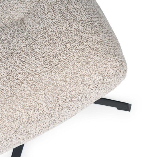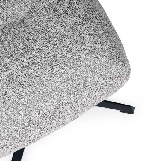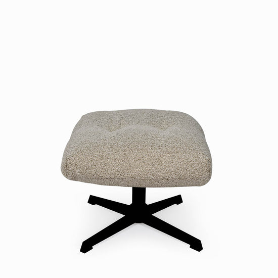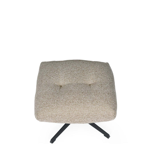 El reposapiés Didier destaca por su diseño lujoso y acogedor, con una superficie acolchada que presenta suaves pliegues que crean un sutil efecto capitoné, añadiendo volumen y textura visuales.