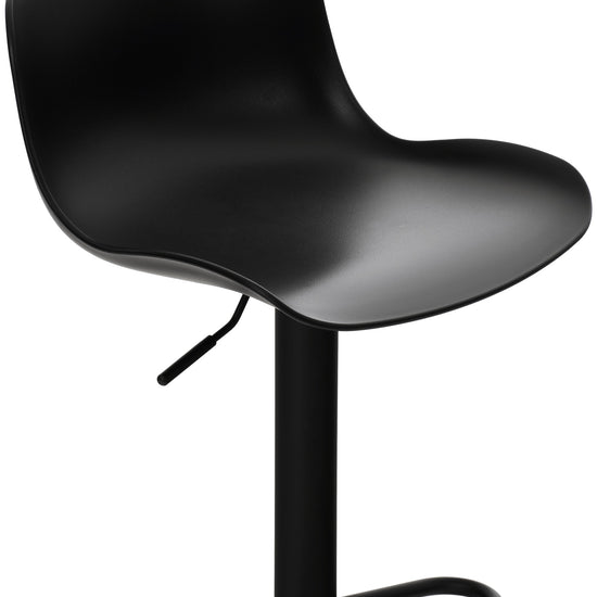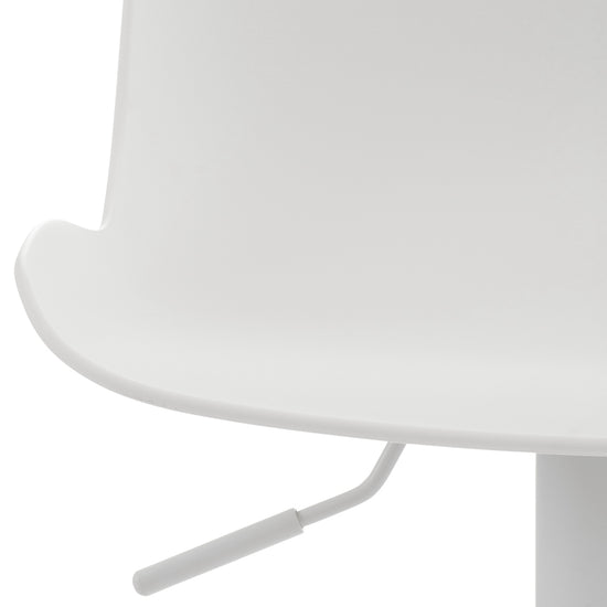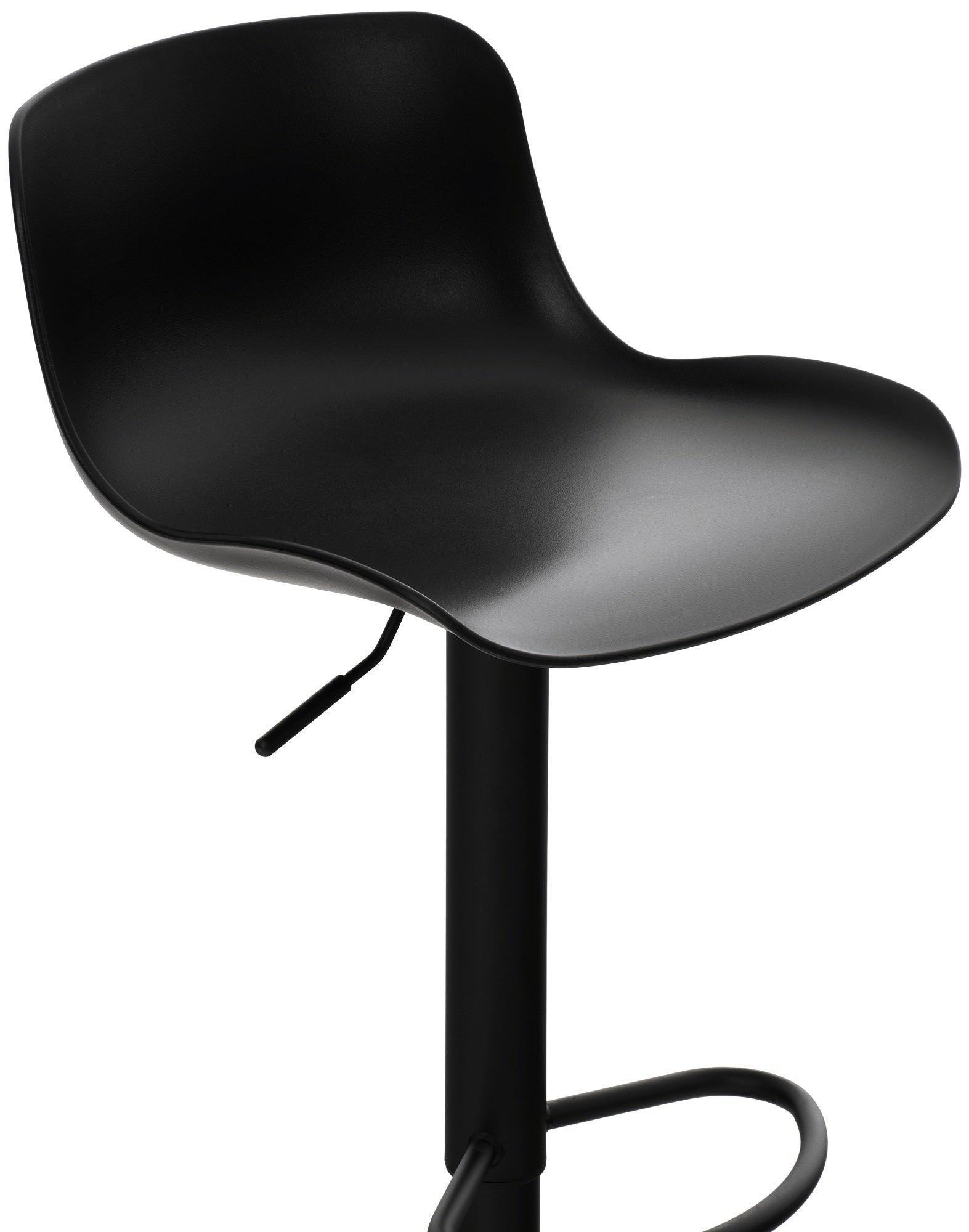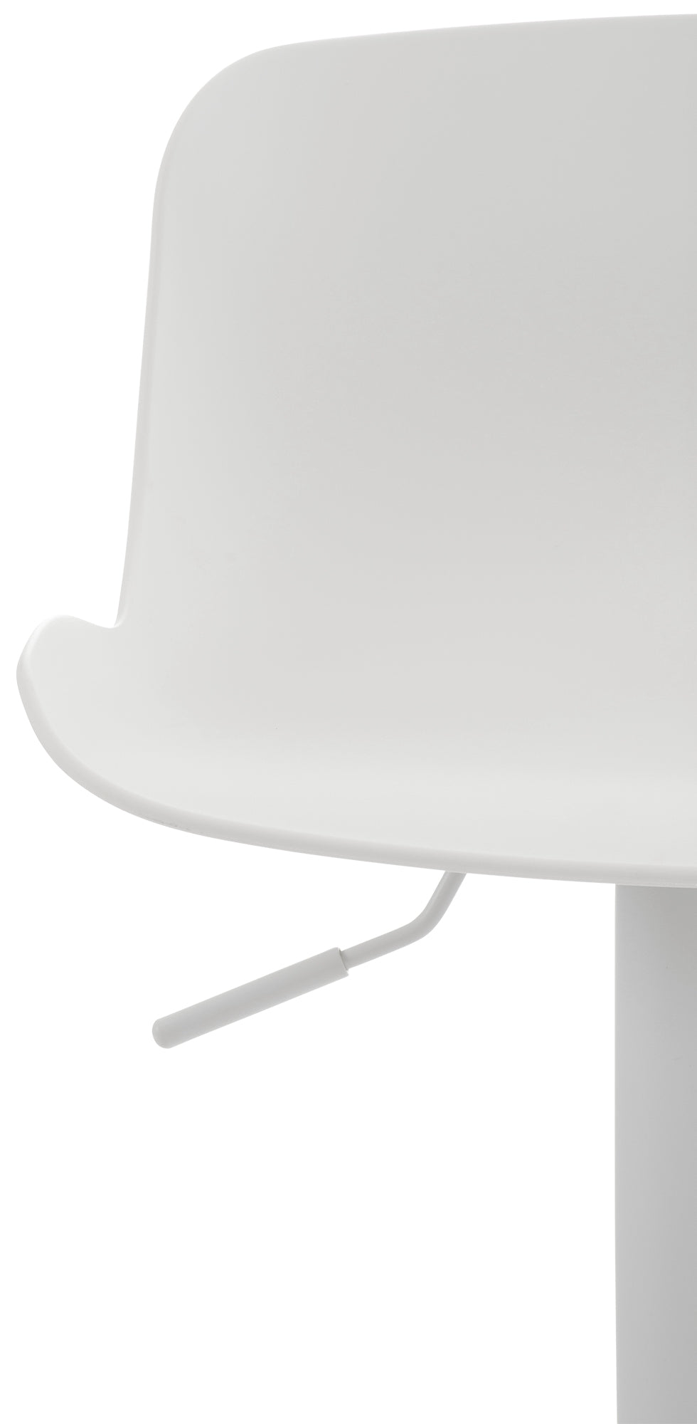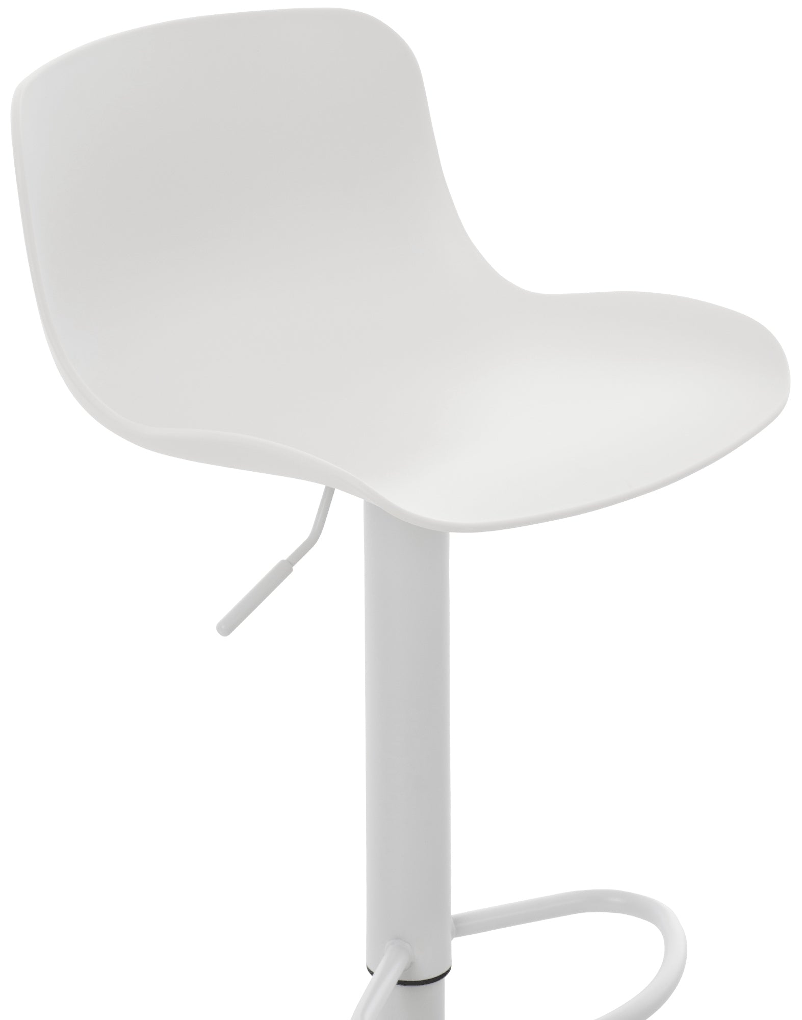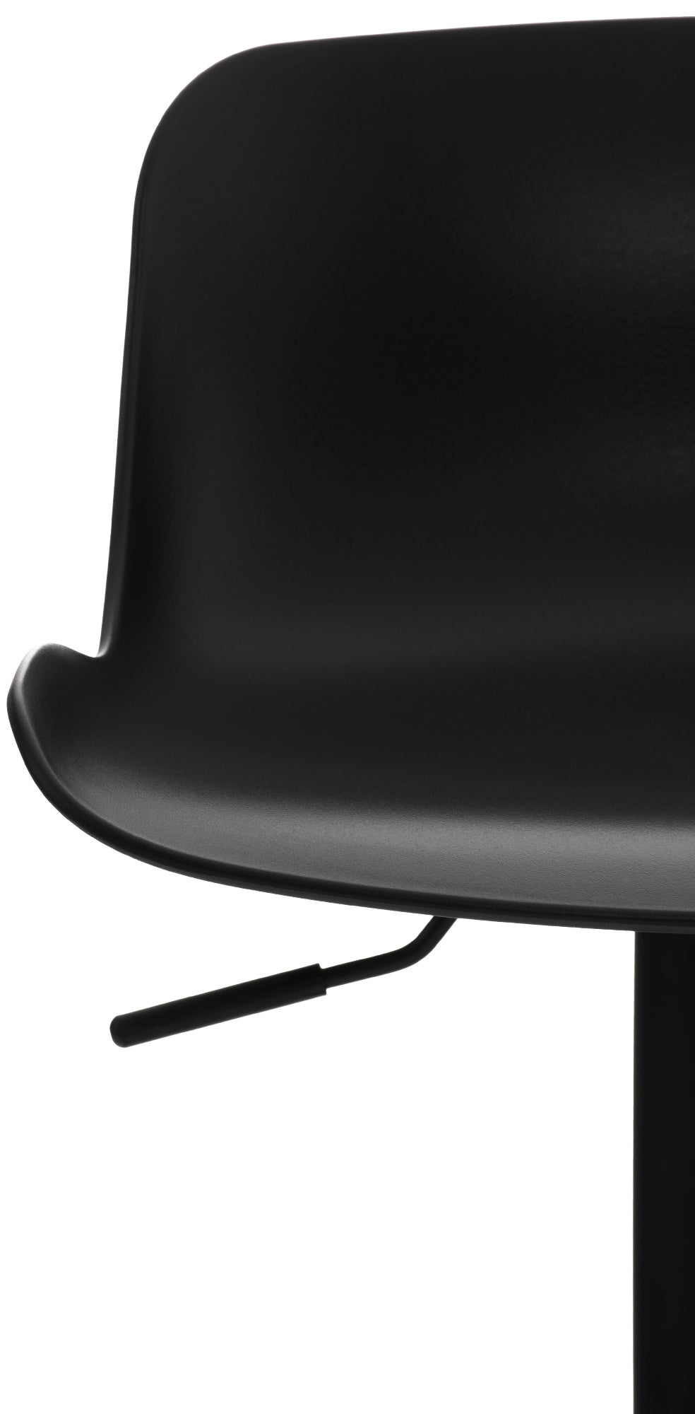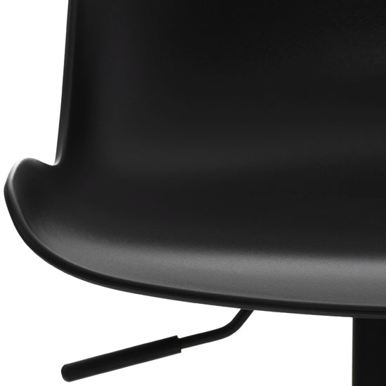 El asiento curvo de polipropileno proporciona comodidad y la altura es regulable mediante un pistón de gas. El asiento también gira 360°.
