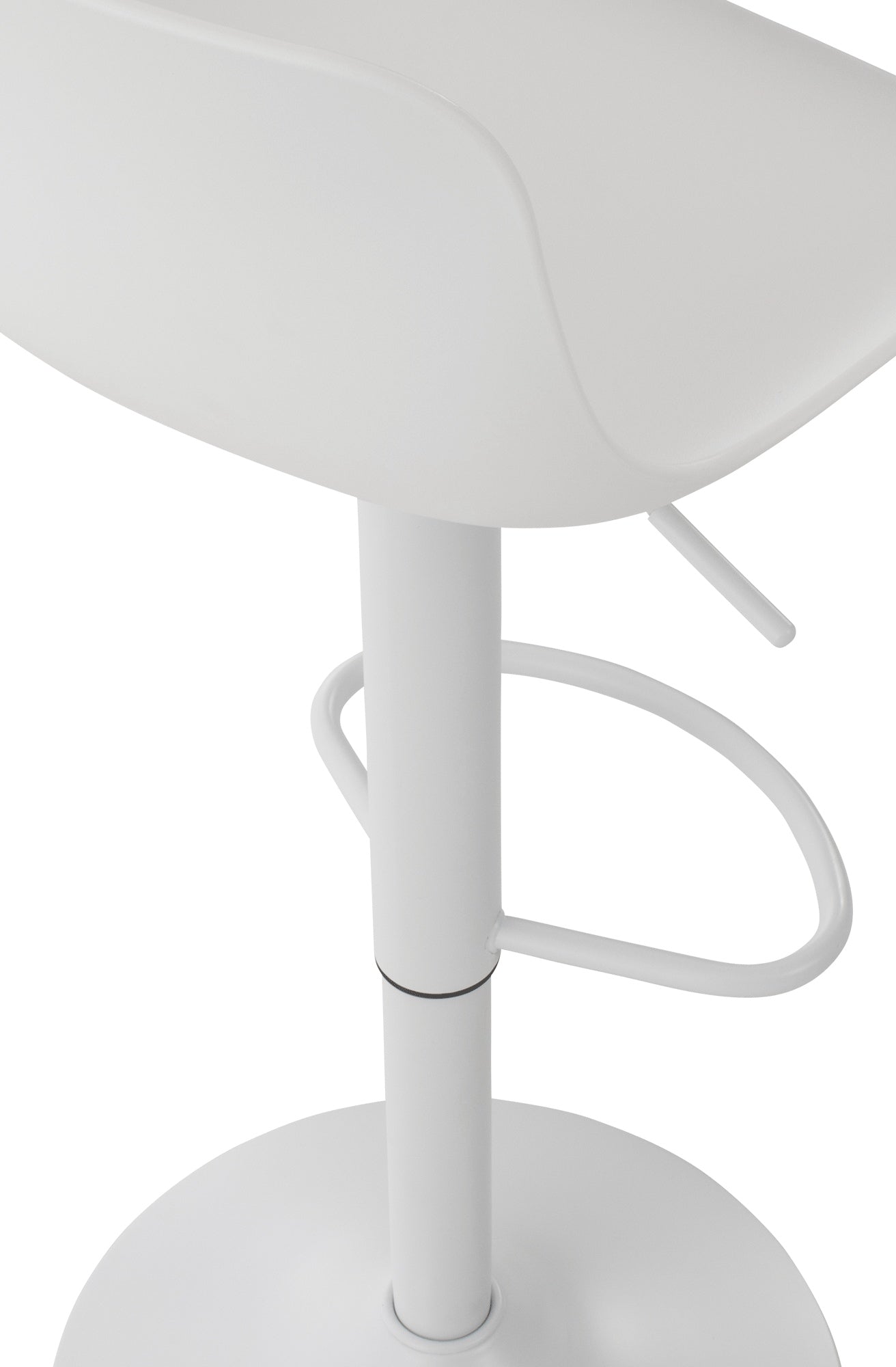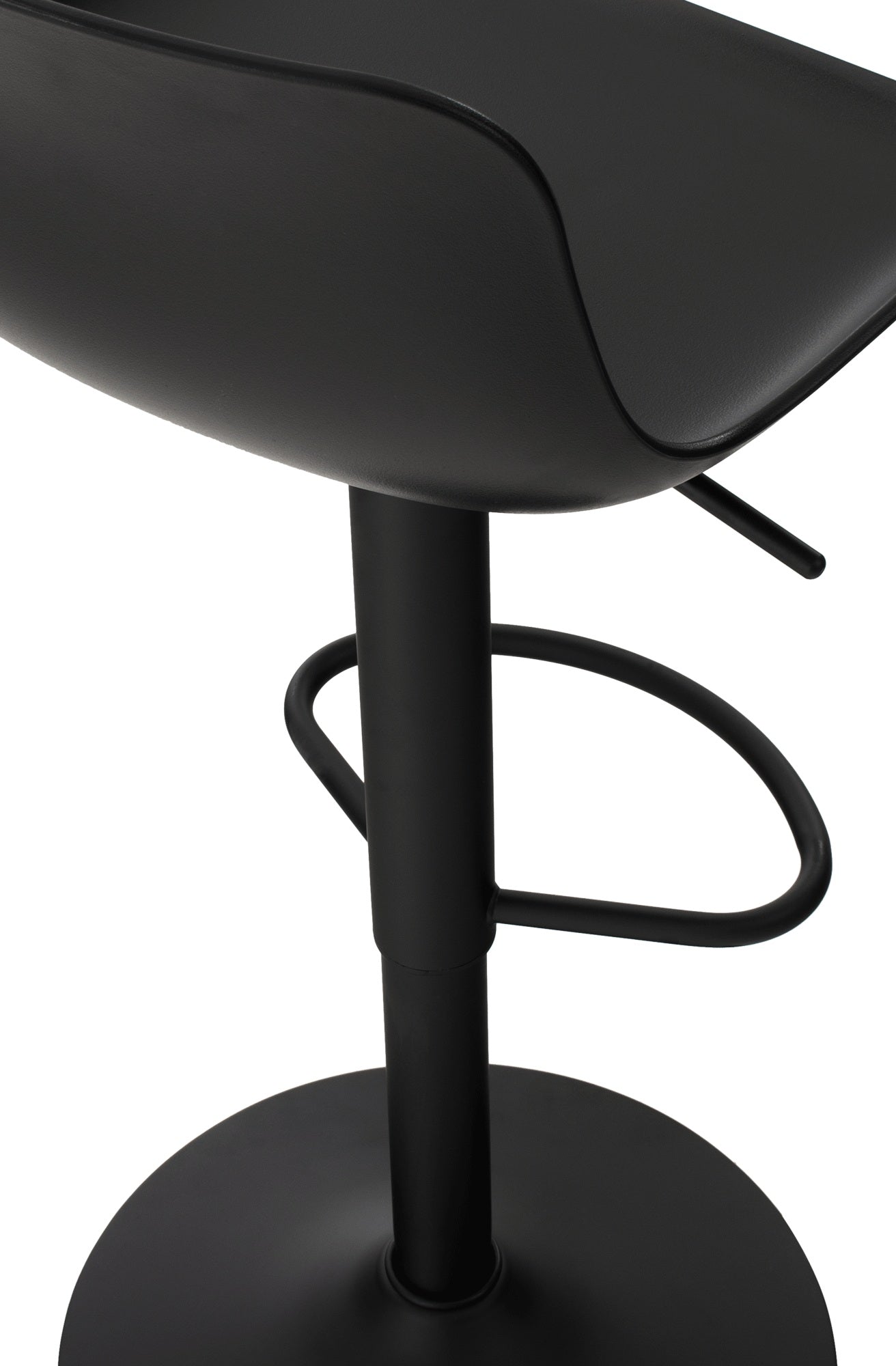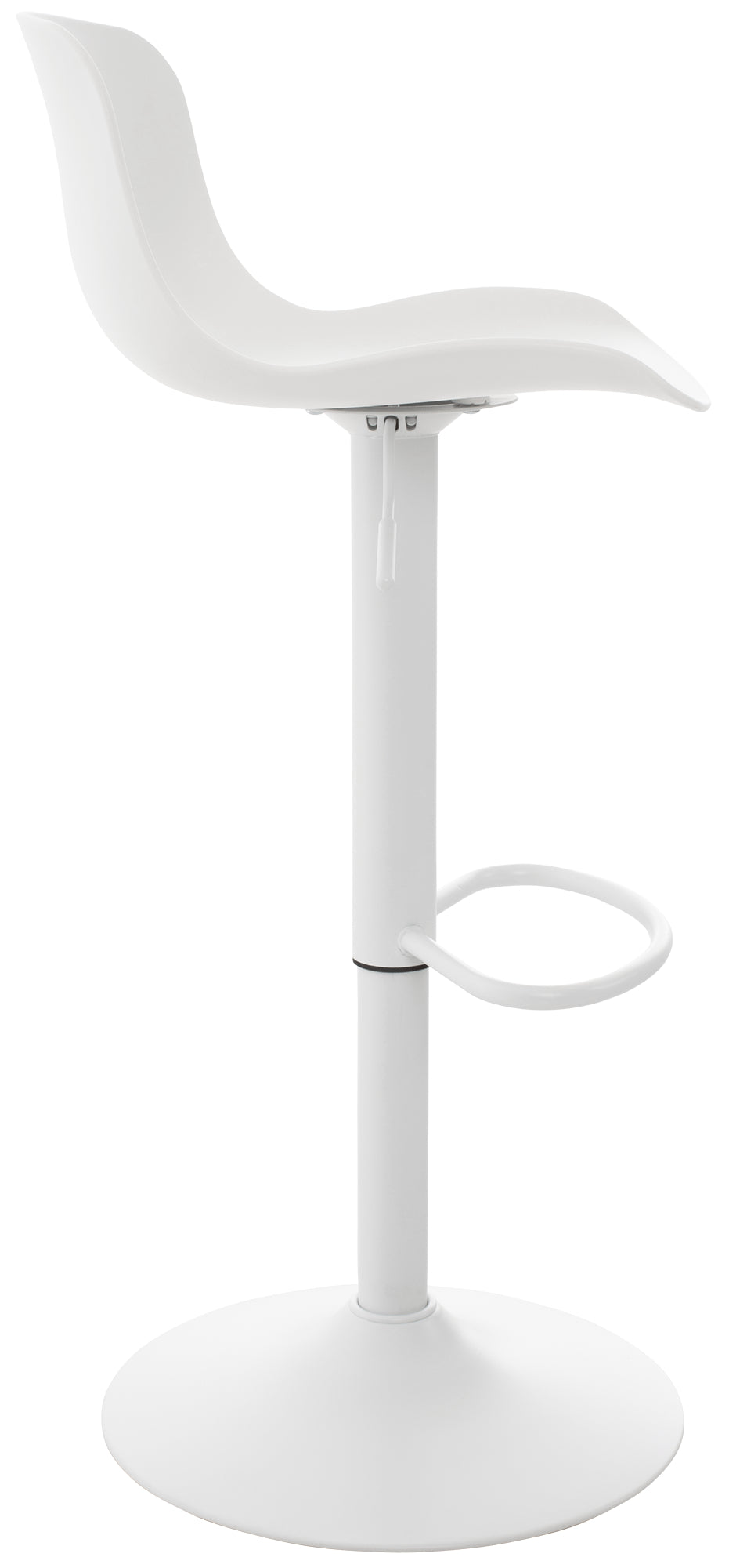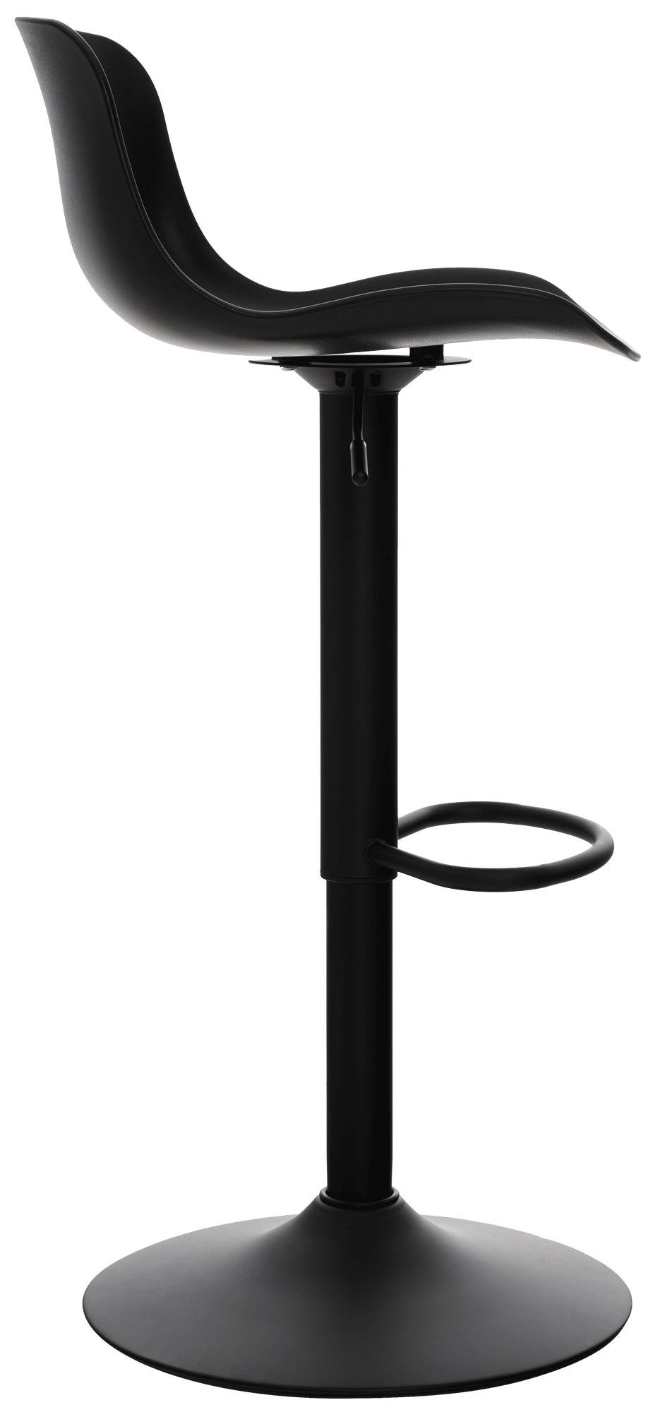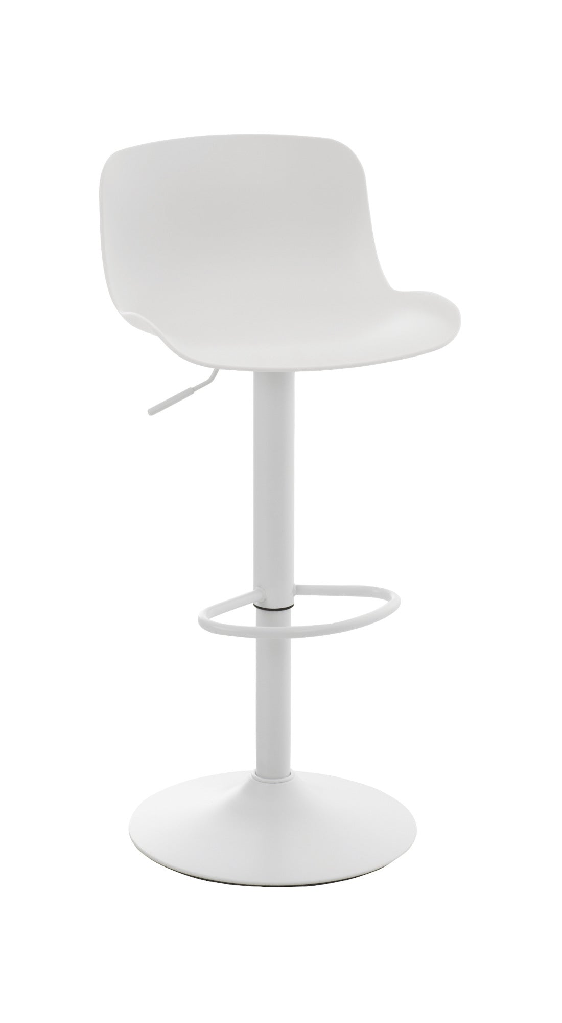 El asiento curvo de polipropileno proporciona comodidad y la altura es regulable mediante un pistón de gas. El asiento también gira 360°.