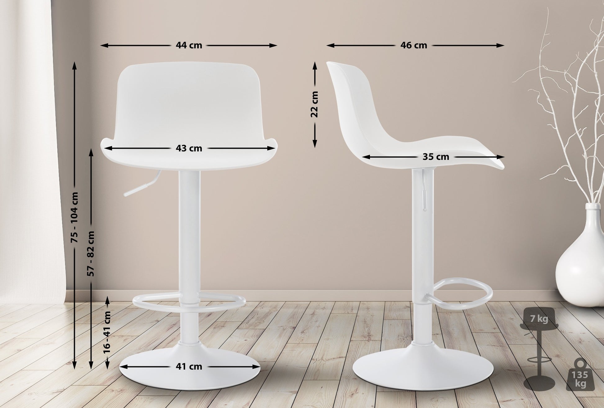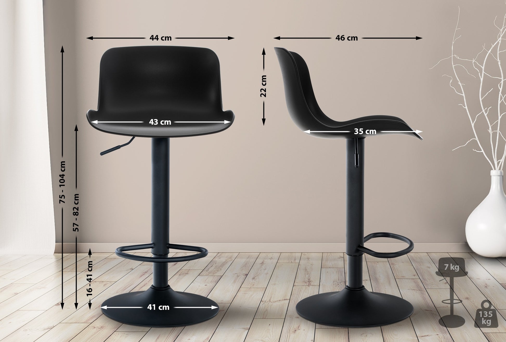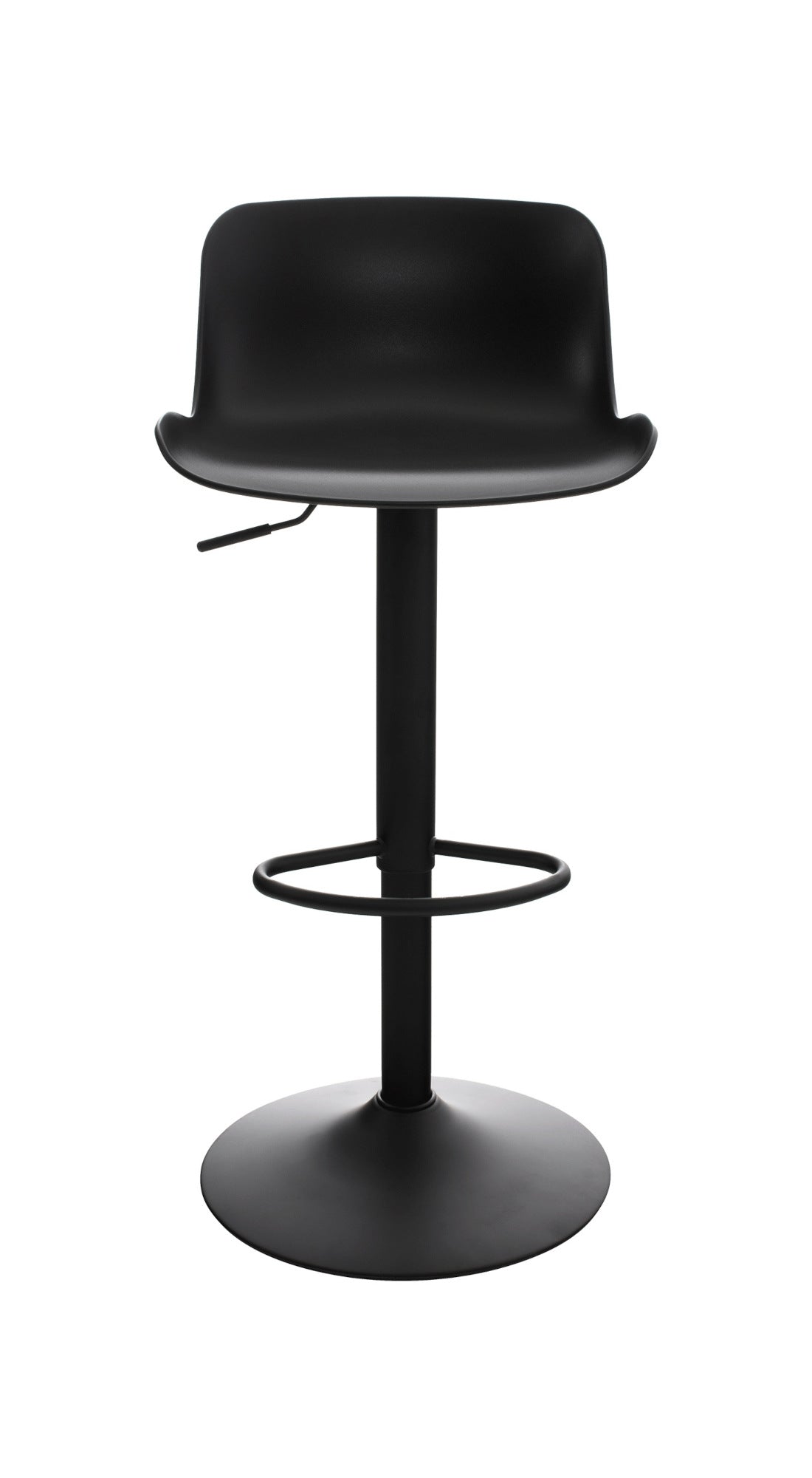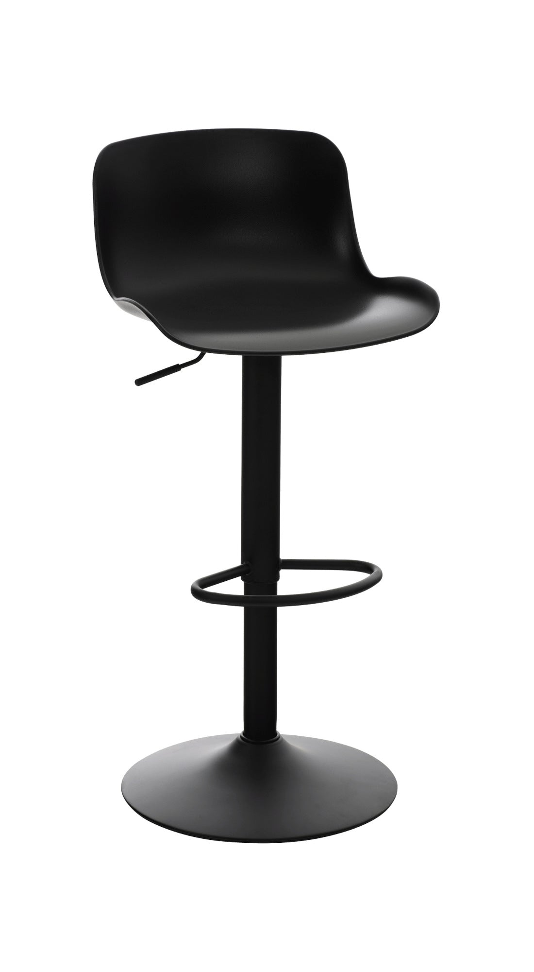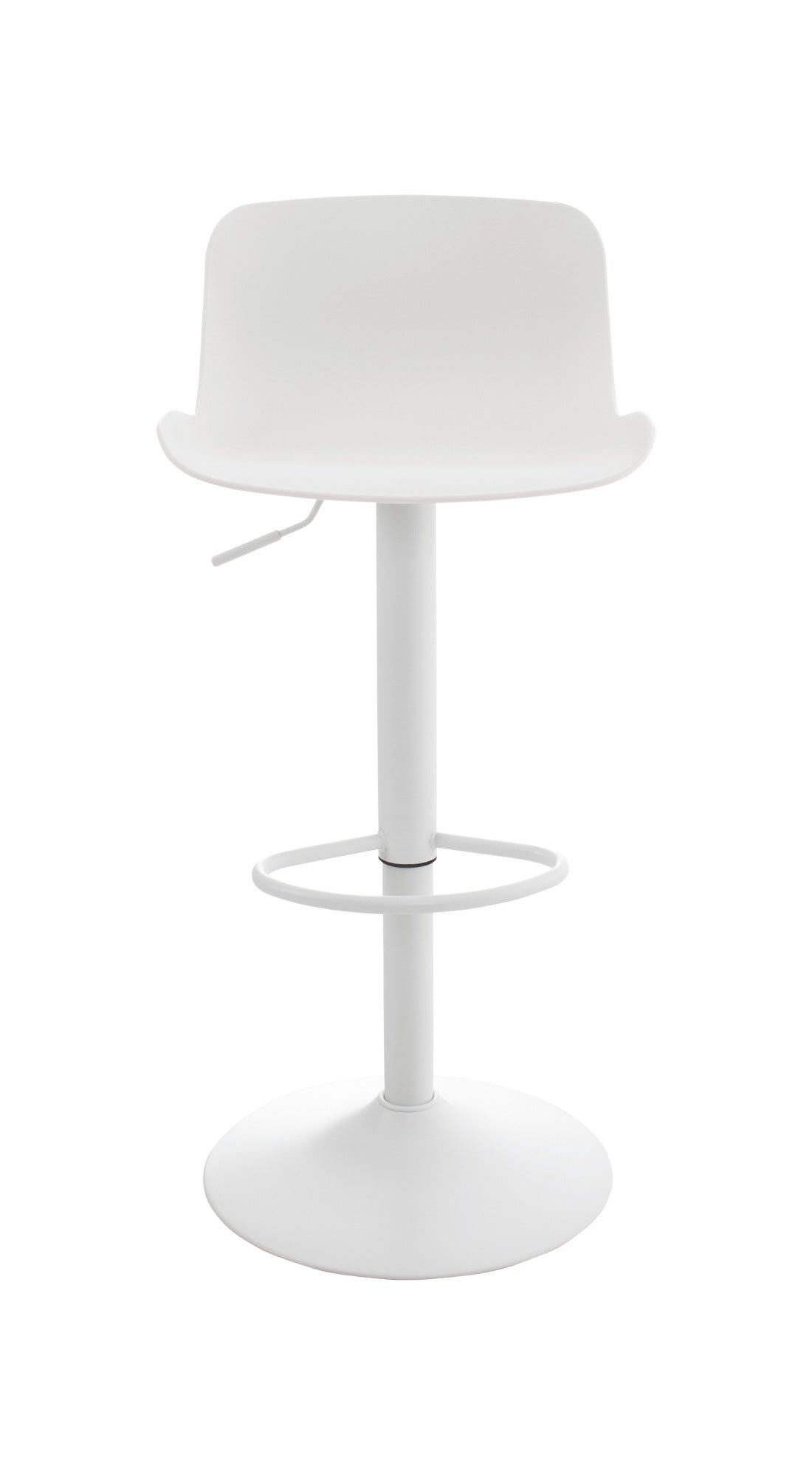 El asiento curvo de polipropileno proporciona comodidad y la altura es regulable mediante un pistón de gas. El asiento también gira 360°.