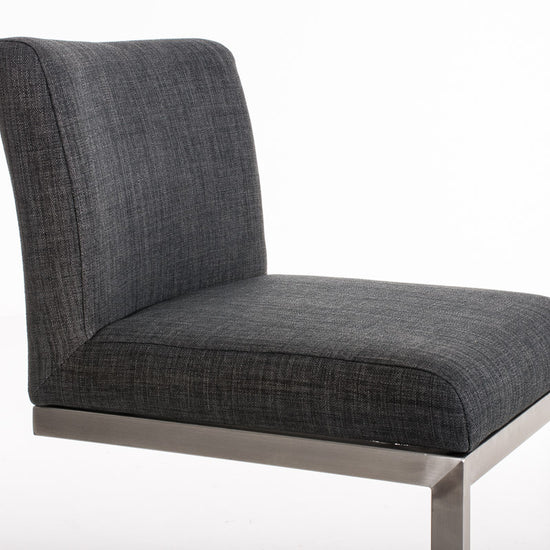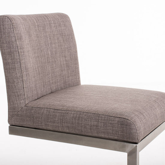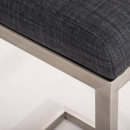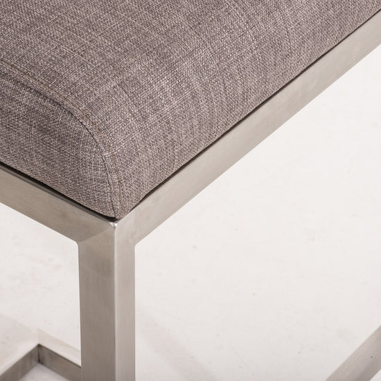 Su estructura voladiza de líneas rectas, fabricada en acero inoxidable cepillado, crea un atractivo visual impactante, y el suave movimiento de balanceo del asiento proporciona una sensación muy agradable.