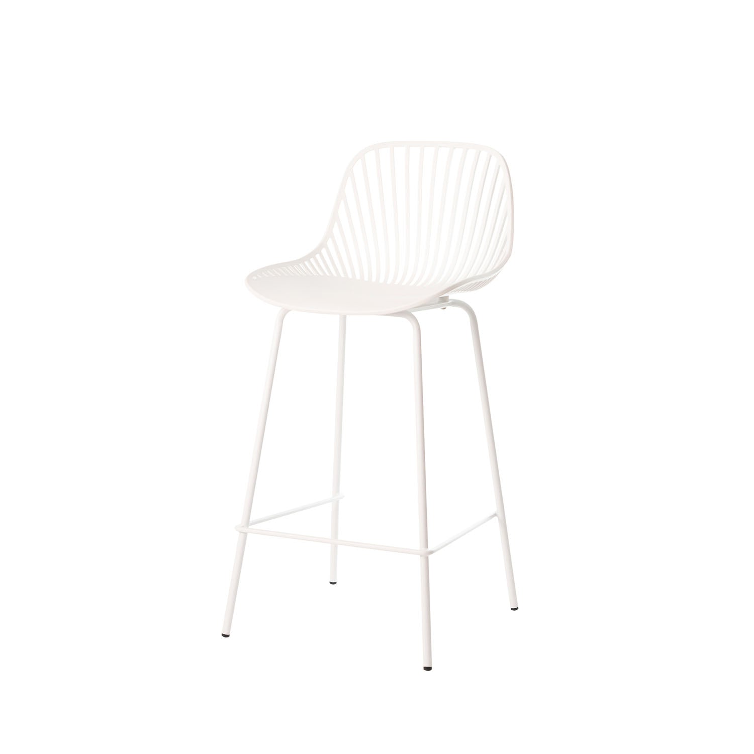 El taburete de bar Peyton en metal con asiento de polipropileno en tres acabados a elegir: blanco, menta y negro.