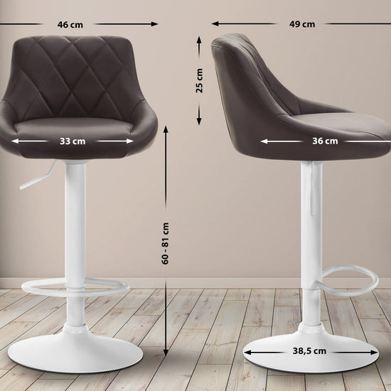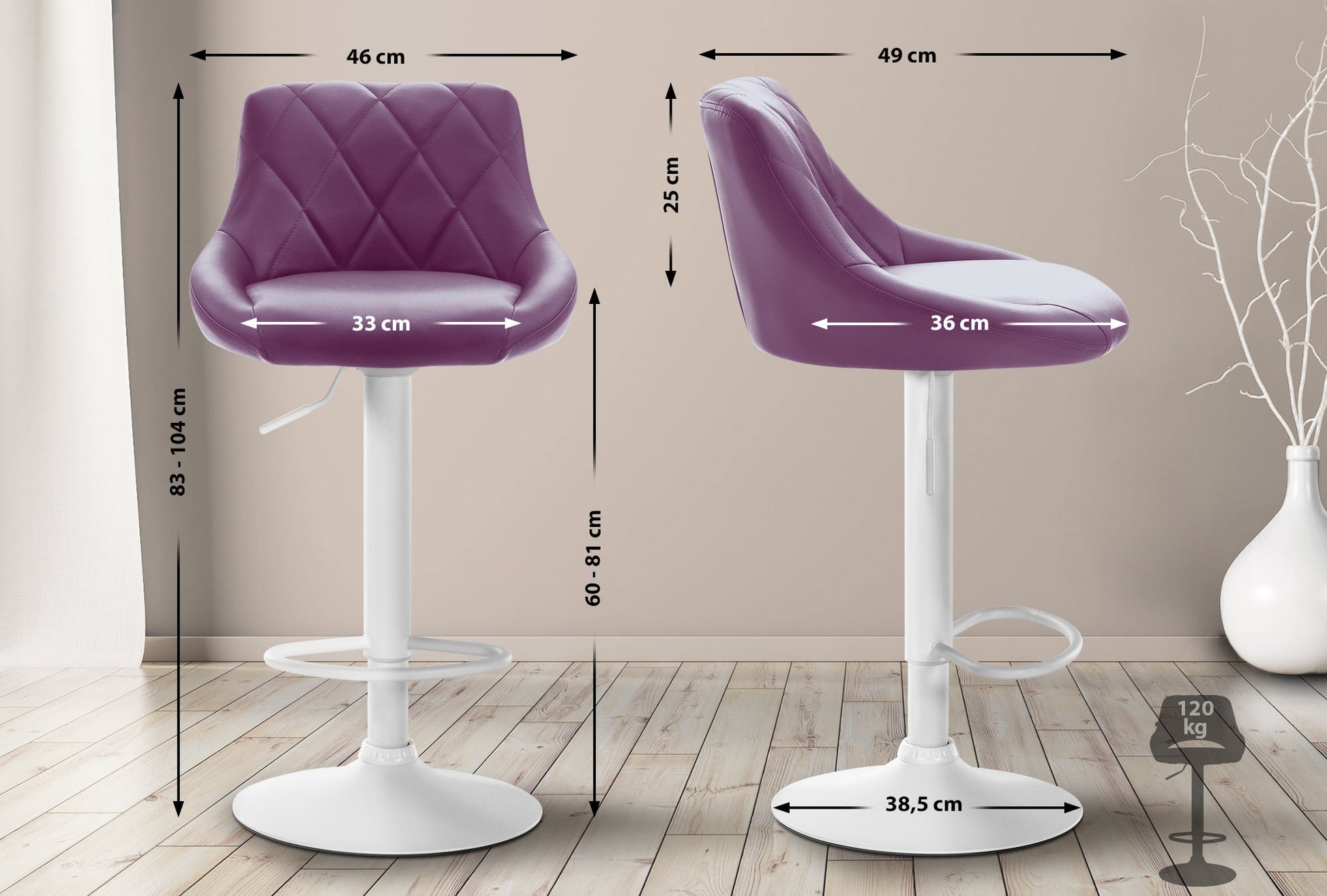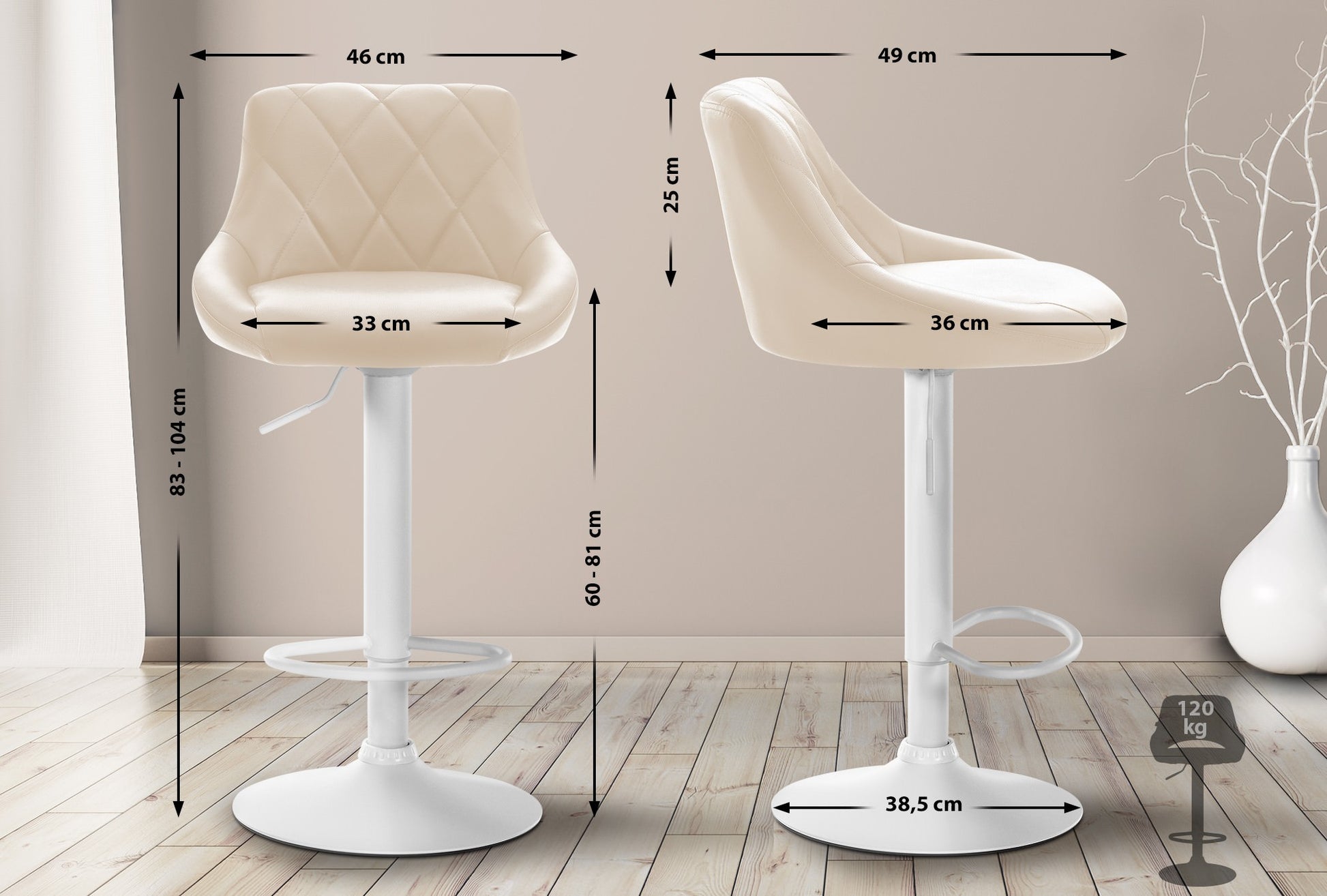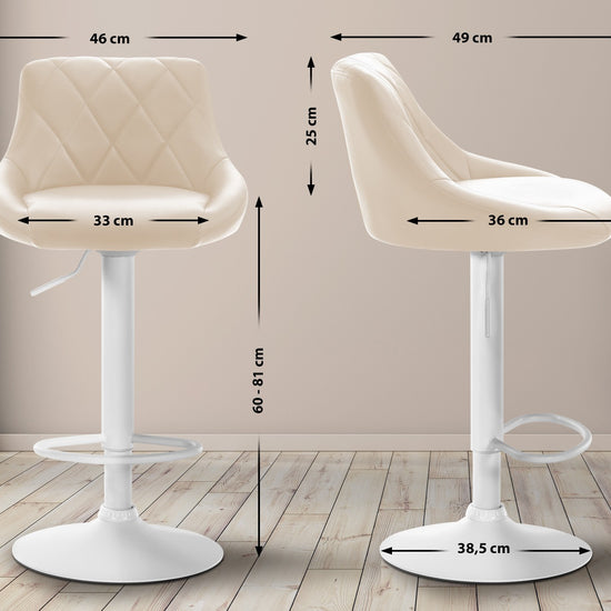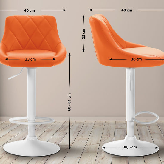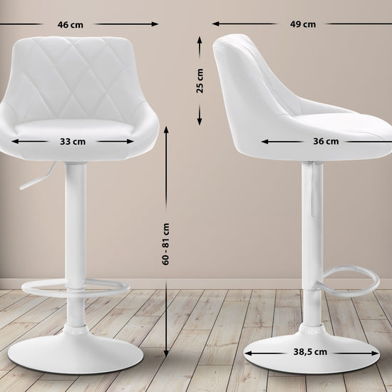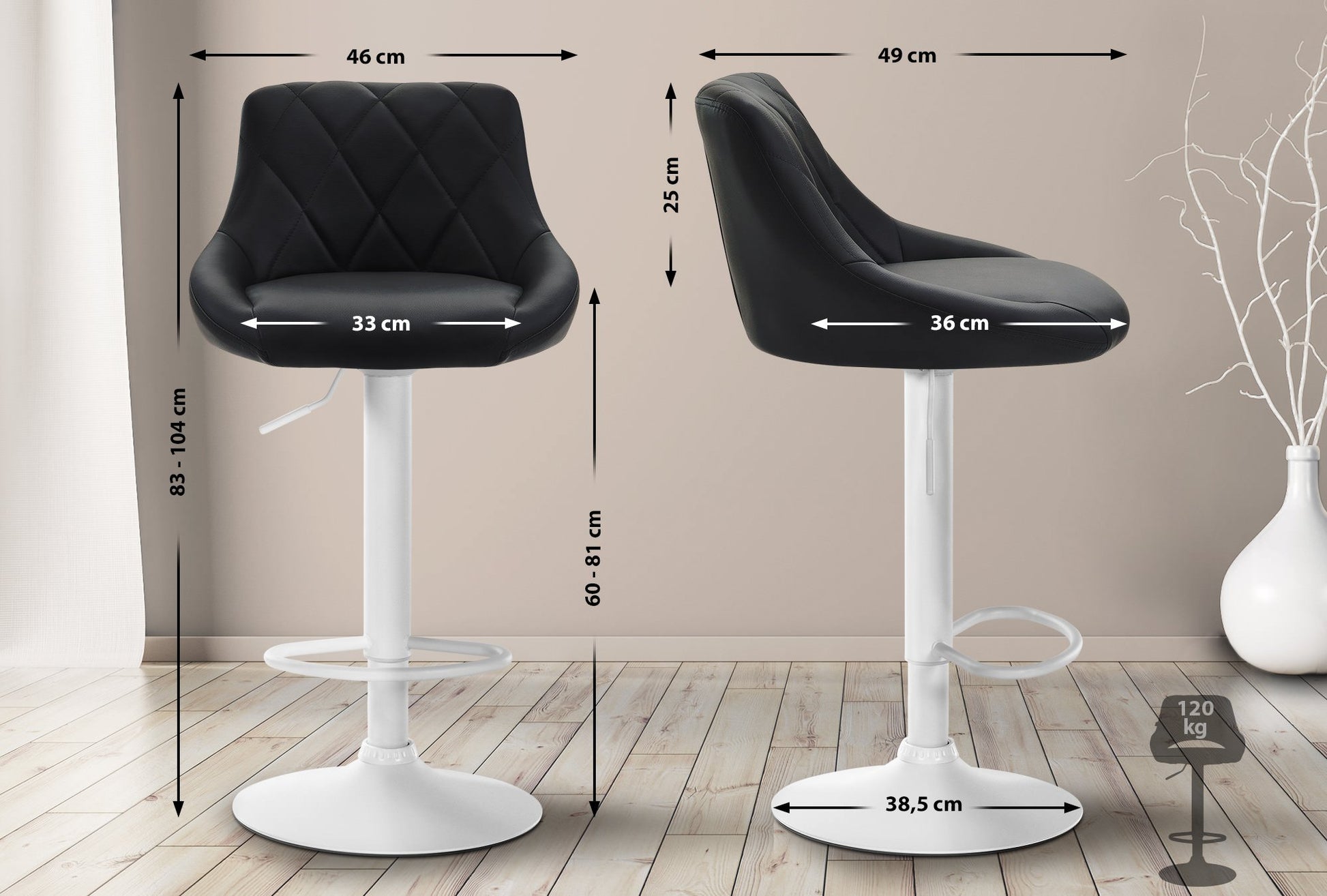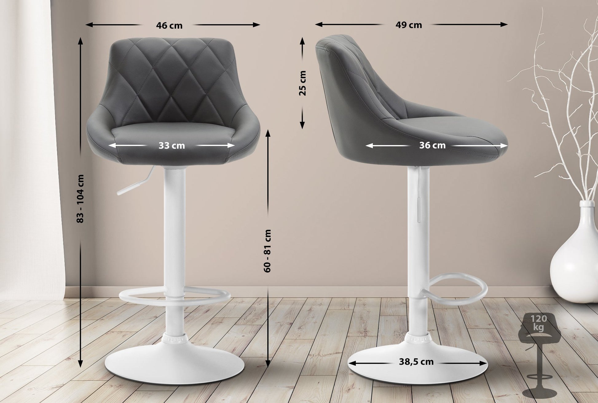 Material da estrutura: Metal Material do assento: Pele sintética Dimensão total: 46 cm x 49 cm x 83 cm Altura total: 83 cm Altura Variável: 83-104 Largura total: 46 cm Profundidade Total: 49 cm