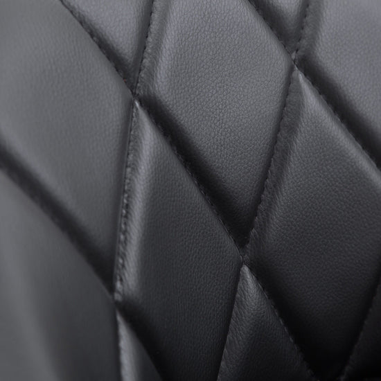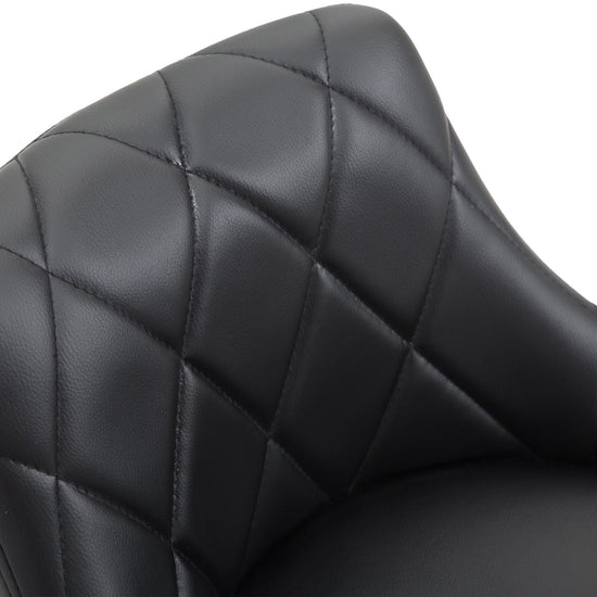 O assento é revestido em pele sintética e trabalhado com costuras decorativas detalhadas.